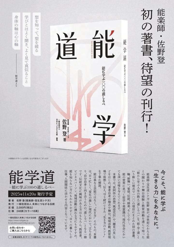 能は単なる芸能ではなく、〝生き方〟そのもの。本書は日々忙しく、変化の激しい現代において、立ち止まり、自分自身と向き合うための「道しるべ」となる一冊です。伝統文化に興味がある方はもちろん、教育者、ビジネスパーソン、地域活動に携わる方にもおすすめ。能を知らない方にもわかりやすく、日々の暮らしや仕事、人間関係に活かせる内容となっています。